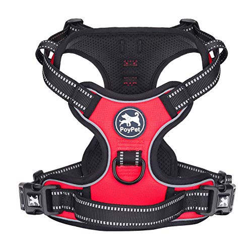 PoyPet No Pull Dog Harness, Reflective Vest Harness with 2 Leash Attachments and Easy Control Handle for Small Medium Large Dog(Red,S)