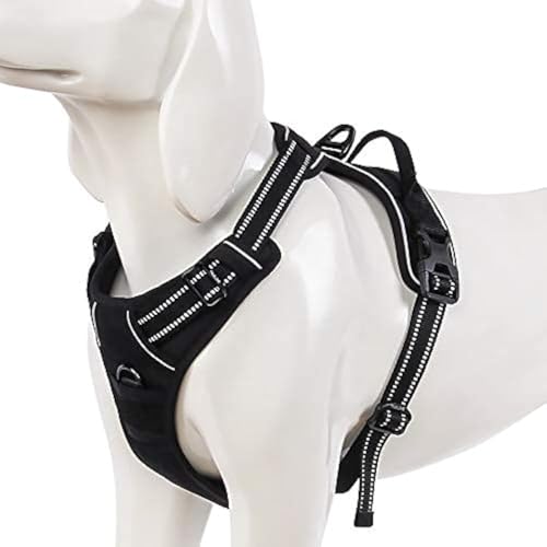 Funfox No Pull Dog Harness for Large Dogs, Adjustable Dog Harness with Handle Reflective Strips for Walking, Anti Pull Breathable Padded Pet Vest Front Clip Easy Control Large Breed Black L