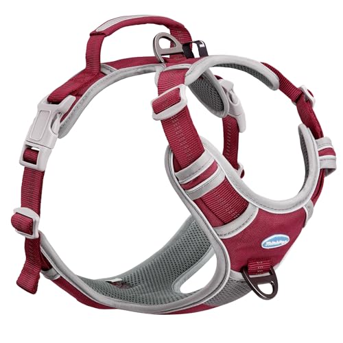 ThinkPet No Pull Harness Breathable Sport Harness with Handle-Dog Harnesses Reflective Adjustable for Medium Large Dogs,Back/Front Clip for Easy Control Dark Red S