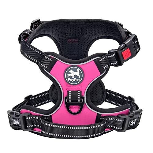 PoyPet No Pull Dog Harness with Neck Release Buckle, Reflective No-Choke Harness with 2 Leash Clip, Adjustable Soft Padded Pet Vest with Easy Control Handle for Small Dogs (Pink,S)