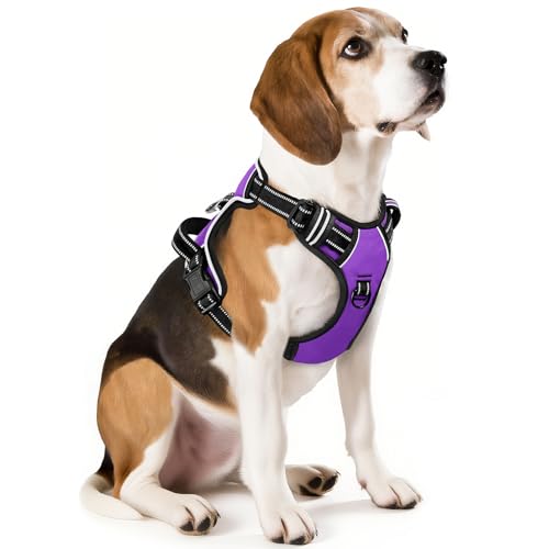 HEELE Dog Harness Medium No Pull Dog Vest Harness with Soft Padded Handle Reflective Dog Harness for Outdoor Training Walking, Purple, M