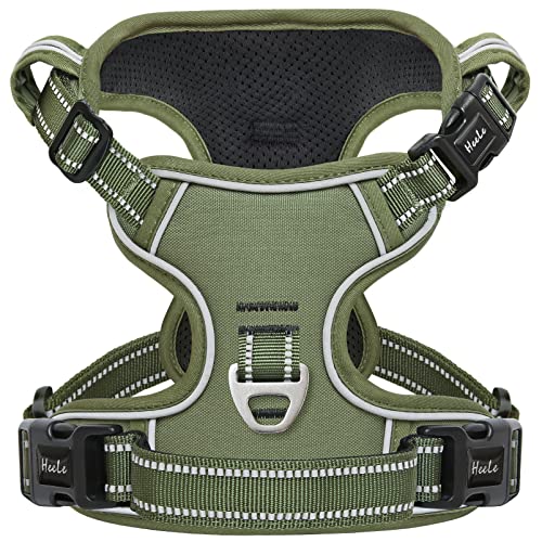 HEELE Dog Harness, No Pull Dog Harness Medium, Release on Neck, Front Back Clips Dog Vest Harness Reflective Adjustable Padded, Easy Control Handle for Outdoor Walking Training, Green, M