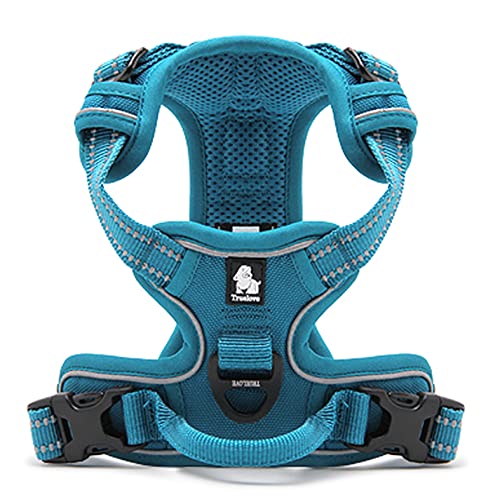 PoyPet No Pull Dog Harness, Reflective Dog Harness for No Choke Dogs, Soft Padded Pet Vest with Easy Control Handle(Tumalo Teal Matching Trim, M)