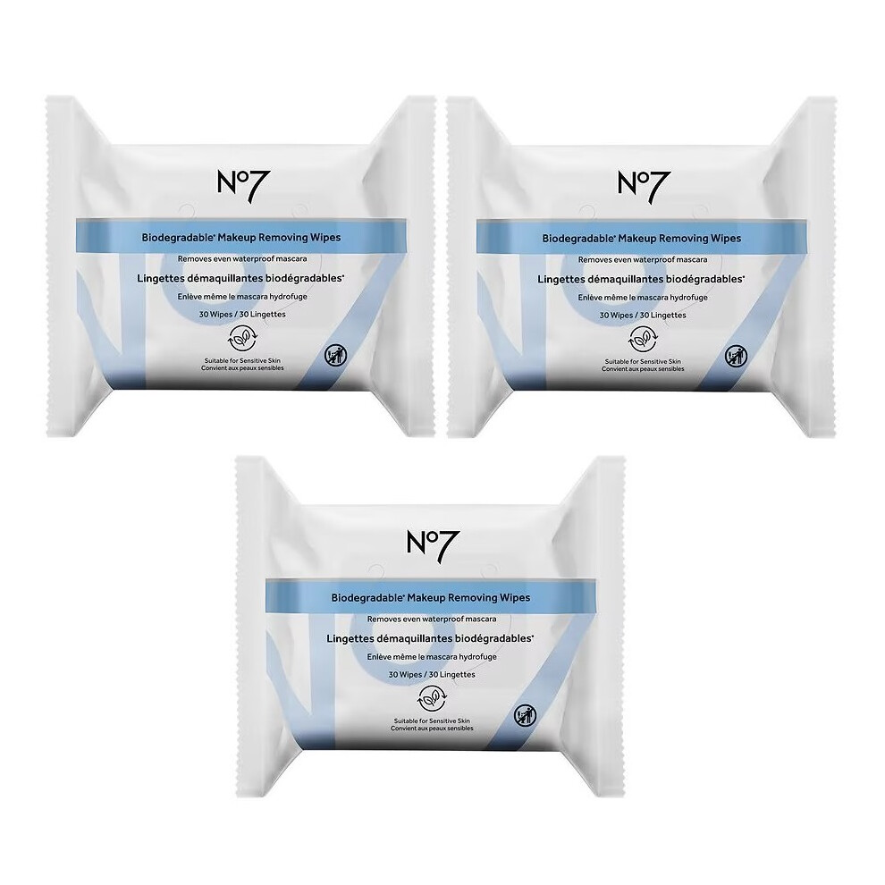 3x No7 Biodegradable Makeup Remover Wipes 30
