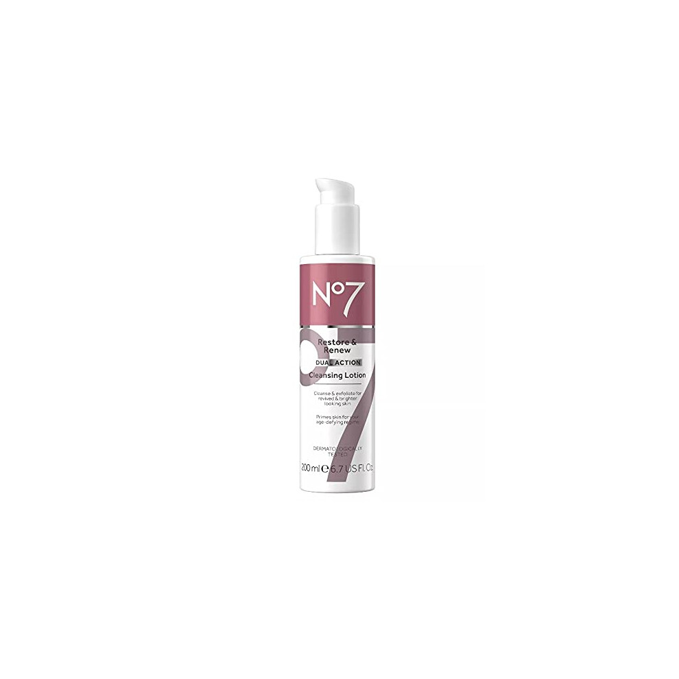 No7 Restore & Renew Dual Action Cleansing Lotion - Facial Cleanser & Exfoliant with Alpha Hydroxy Acid - Cleansing Lotion Makeup Remover for Anti-Agi