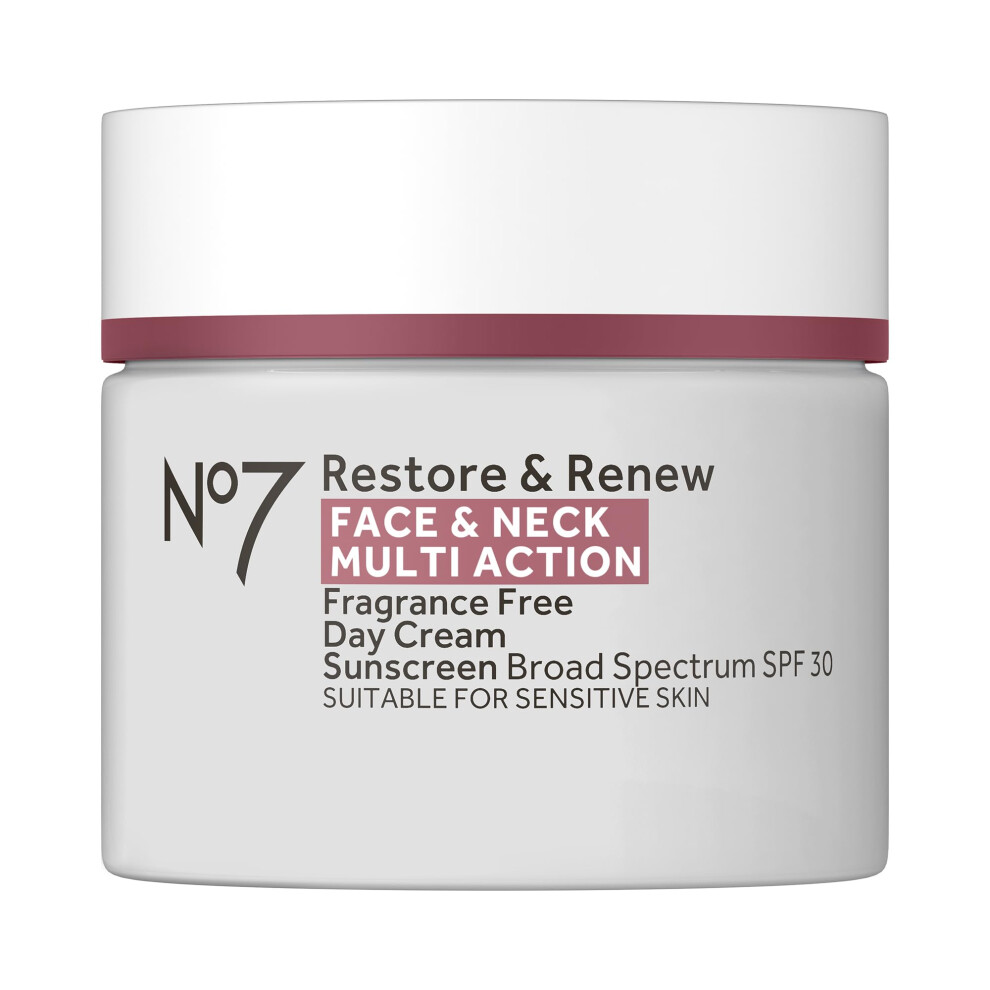 No7 Restore & Renew Multi Action Face & Neck SPF 30 Day Cream - Firming & Hydrating Face Moisturizer with Hyaluronic Acid to Help Reduce the Appe