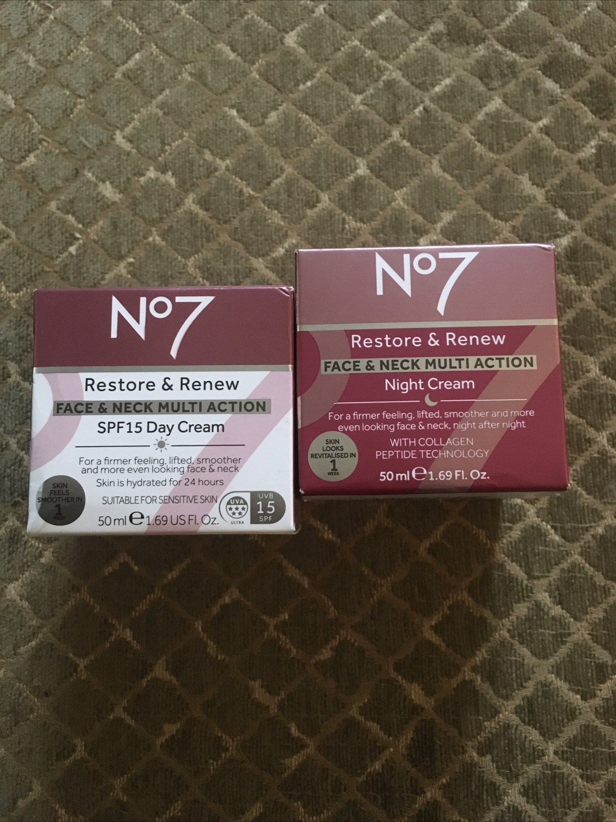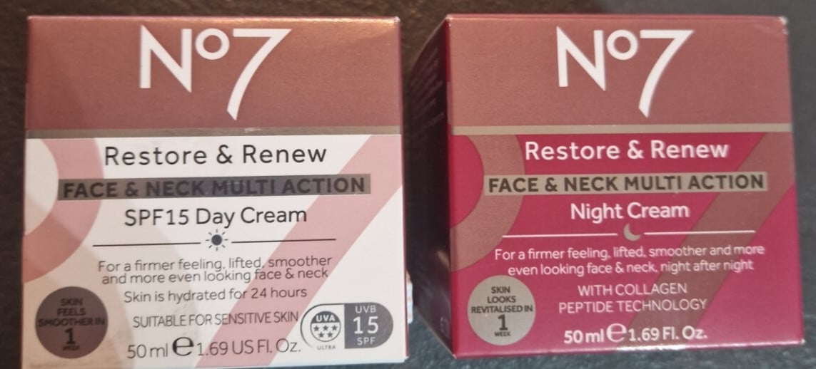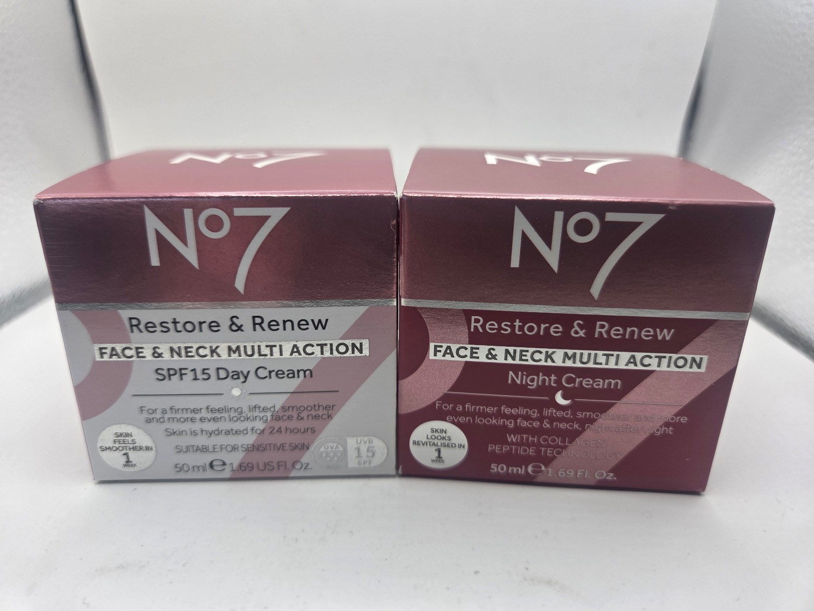 No7 Restore & Renew Face & Neck MULTI ACTION Day SP15 & Night Cream 50ml Sealed