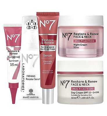 No7 Restore & Renew Serum 30ml, Day Cream 50ml, Night Cream 50ml, Eye Cream 15ml