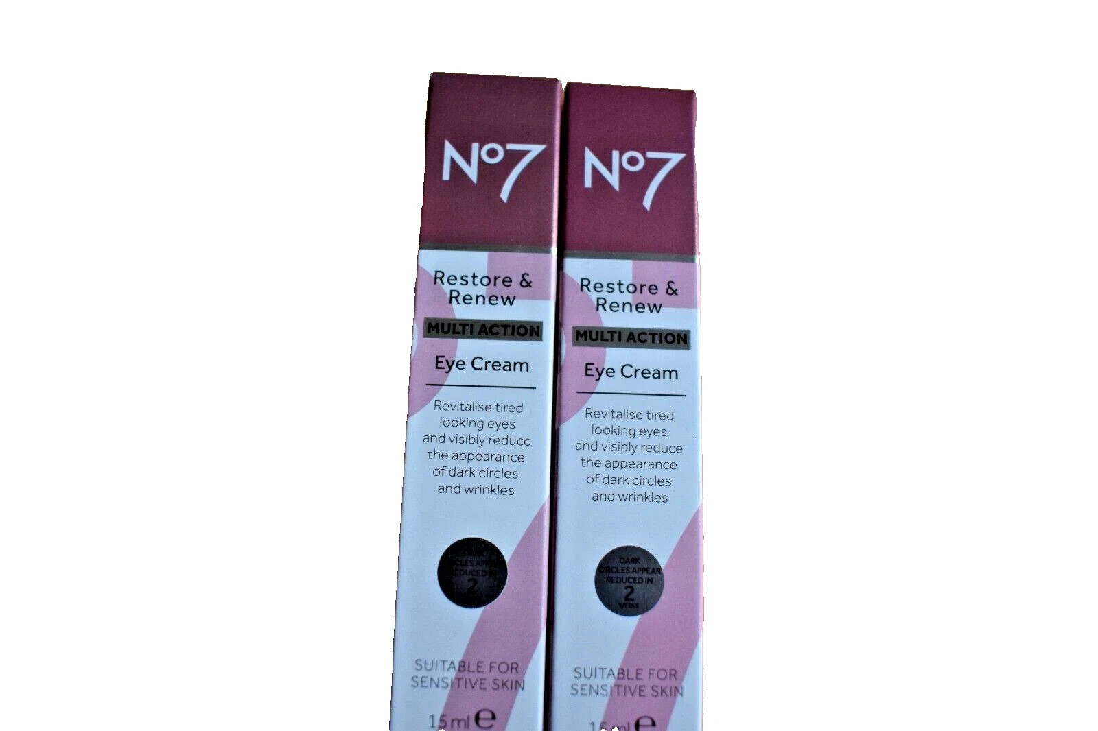 2 X NO7 RESTORE & RENEW MULTIACTION EYE CREAMS 15ML