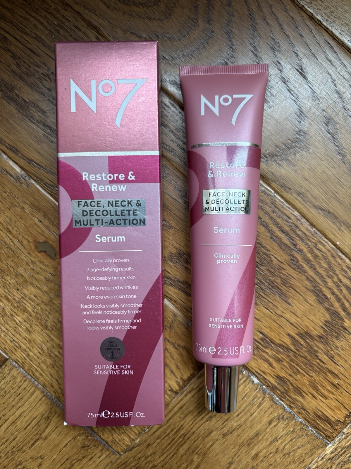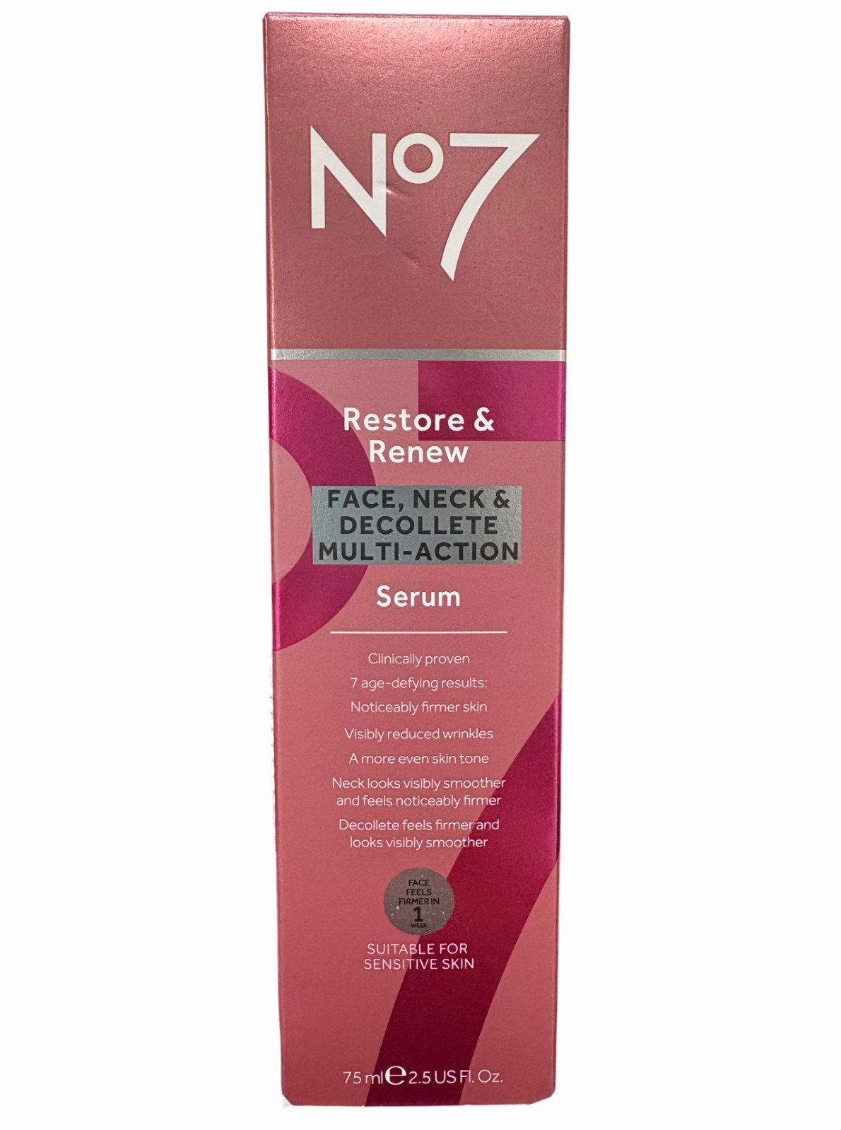 No7 Restore and Renew Face Neck & Decollete Multi Action Serum 75ml (New&Sealed)