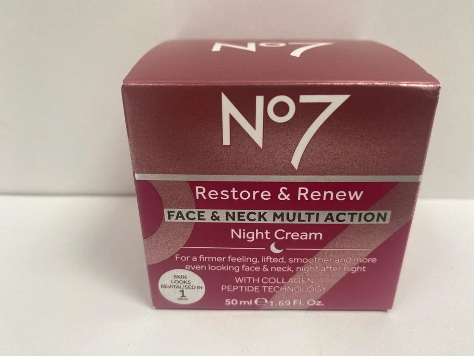 No7 Restore and Renew Face Neck Multi Action Night Cream 50ml Collagen Peptide