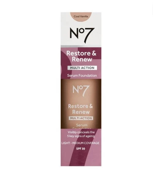 No7 Restore & Renew Multi Action Serum Foundation SPF30 Cool Vanilla 30ML
