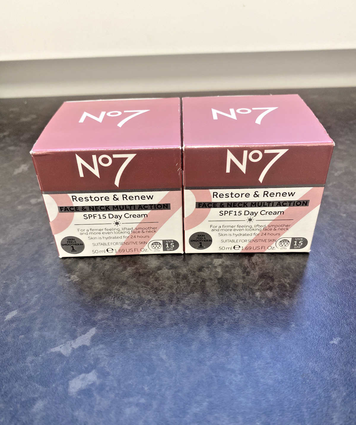 2 x No7 Restore & Renew | Face & Neck Multi Action | SP15 Day Cream | 50ml