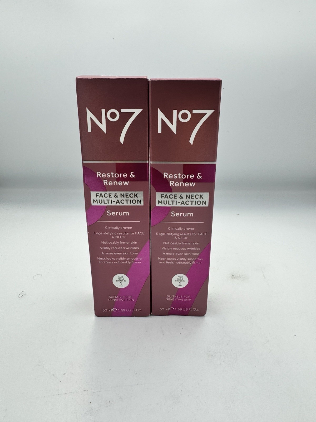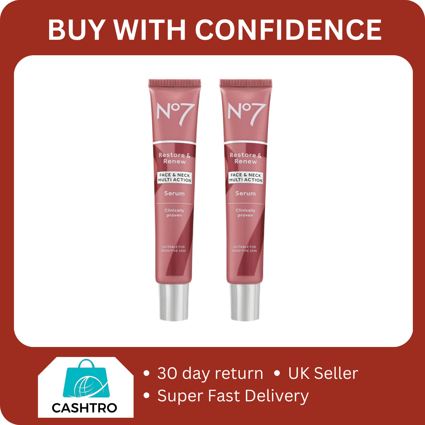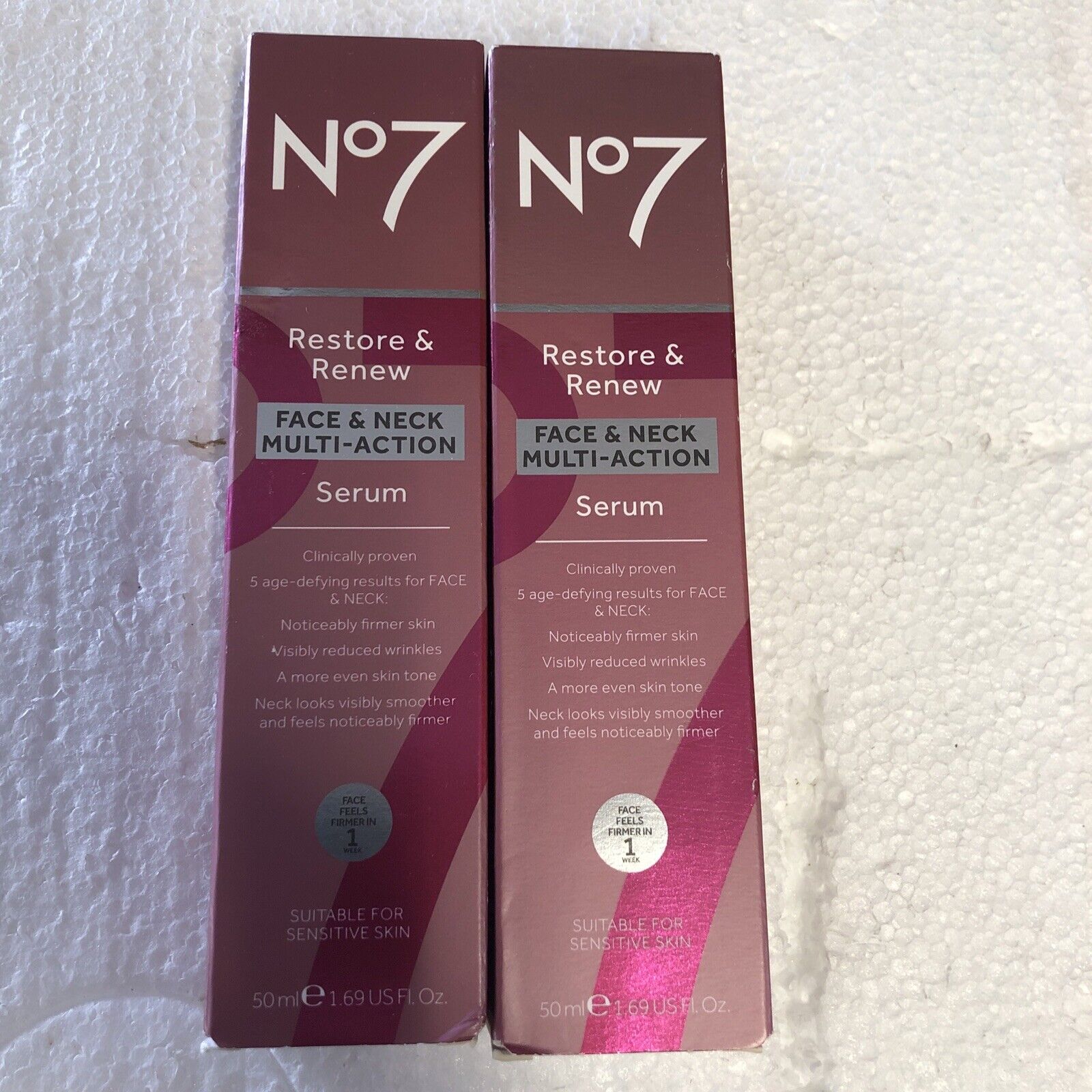 2 X No7 Restore & Renew Face & Neck Multi Action Serum -50ml 100% ORIGINAL ⭐⭐⭐⭐⭐