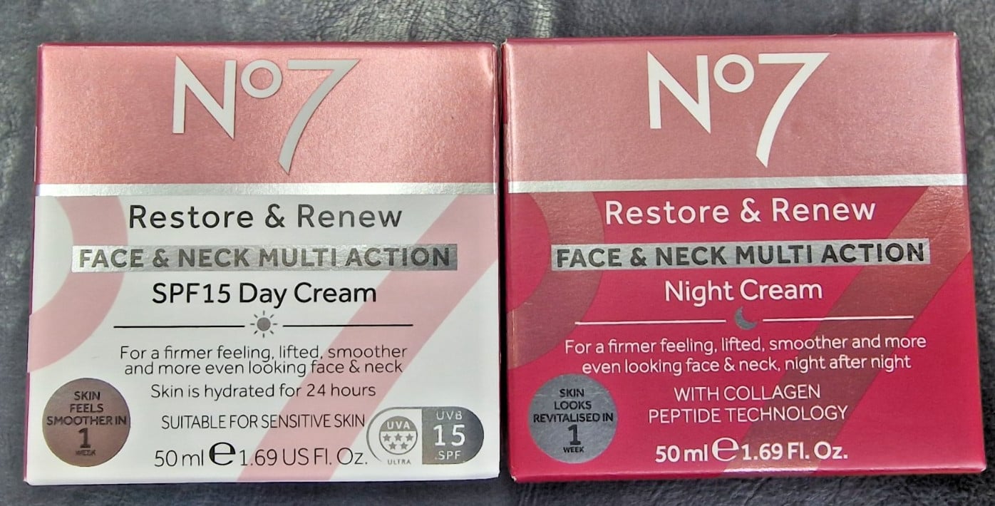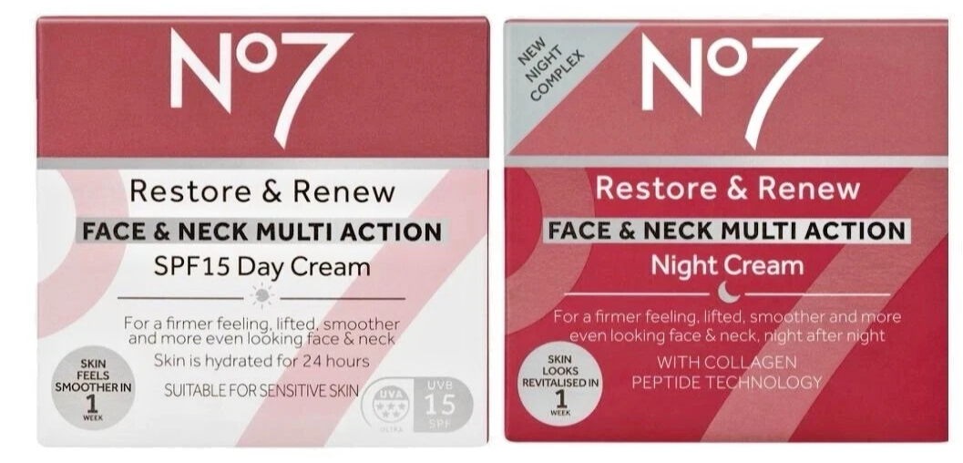 No7 Restore and Renew Face Neck MULTI ACTION Day SP15 & Night Cream 50ml