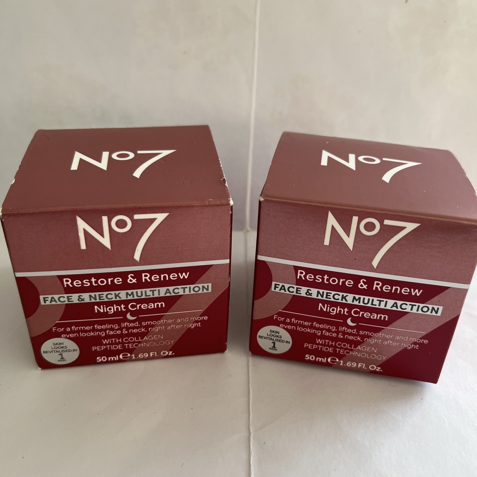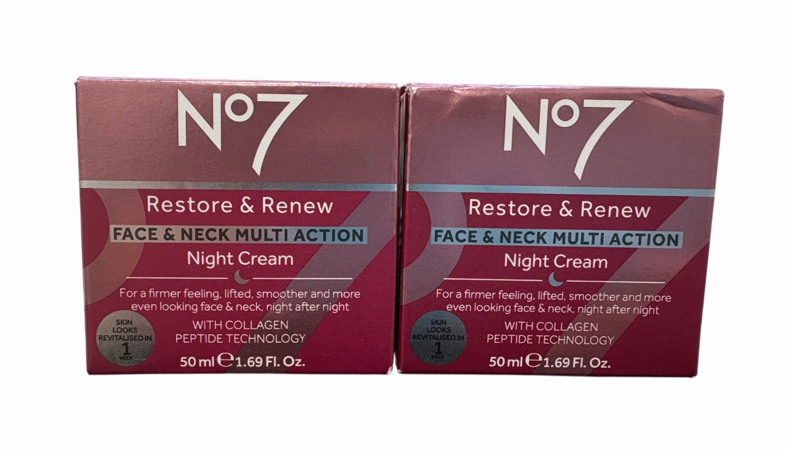 2 x No7 Restore and Renew Face and Neck Multi Action Night Cream | 50ml Box
