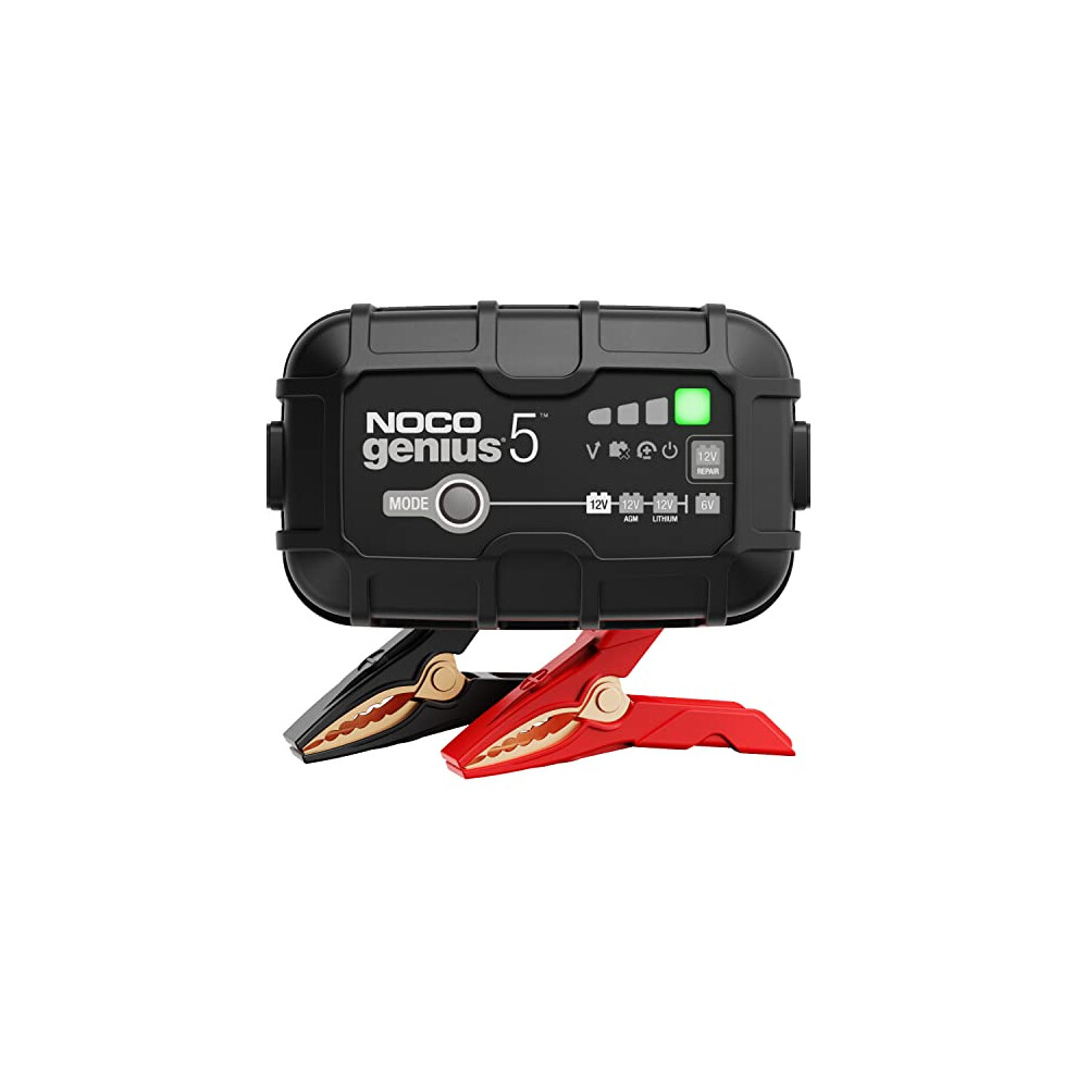 NOCO GENIUS5UK, 5A Car Battery Charger, 6V and 12V Portable Smart Charger, Battery Maintainer, Trickle Charger and Desulfator for AGM, Leisure, Lithi