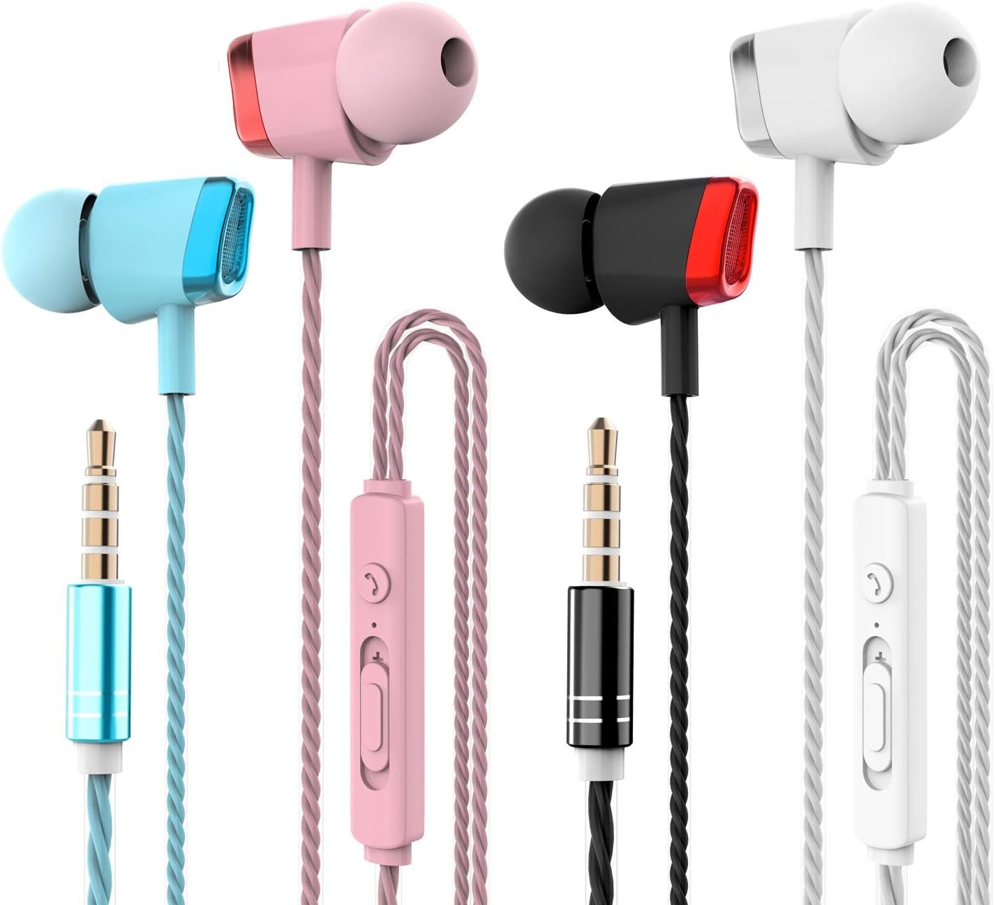 4 Packs Earphones, Noise Isolating In-Ear Headphones with Pure Sound and Powerfu