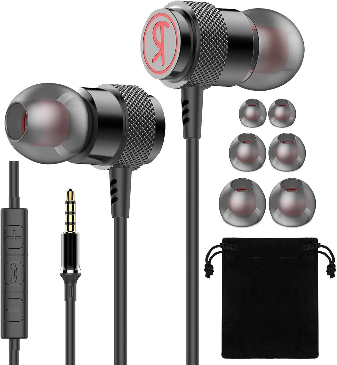 Noise Isolating In-Ear Headphones with Built-In Microphone Volume Control 3.5mm Plug for iPhone Android Stereo Bass Surround Sound Ergonomic Design