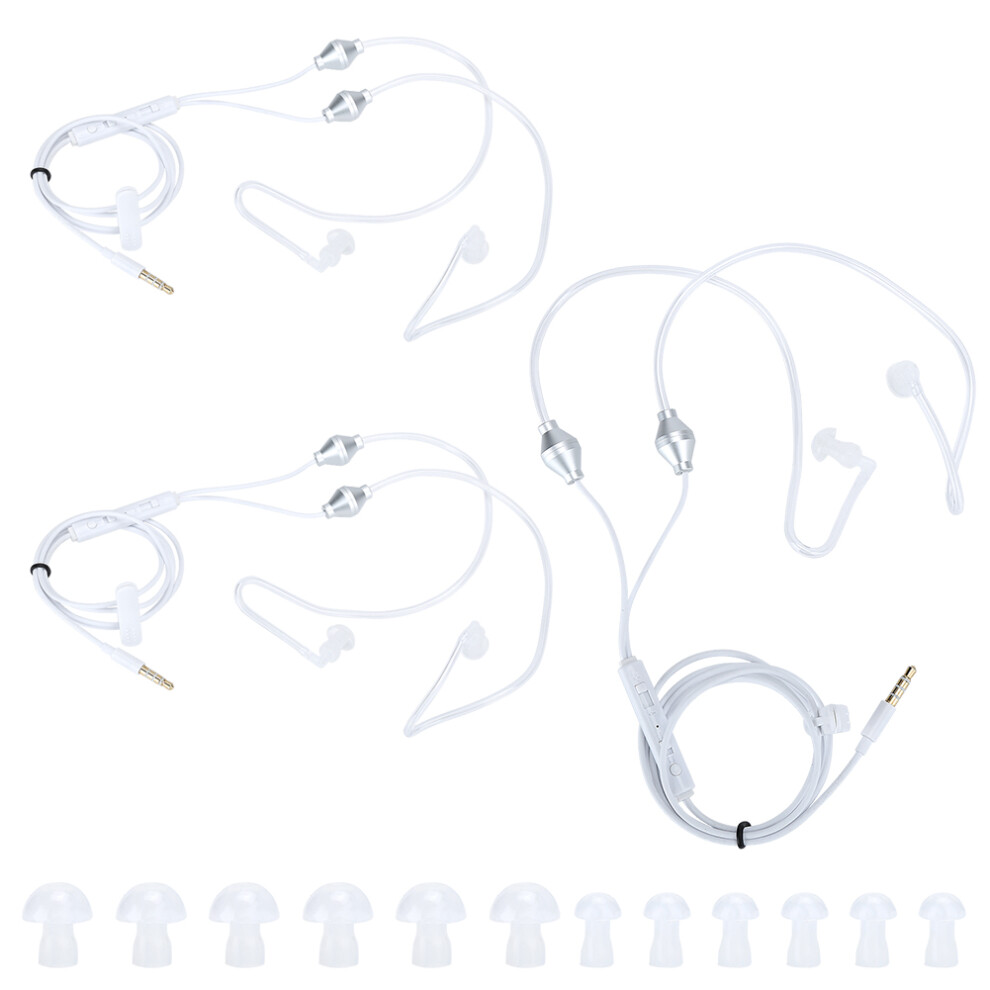 Acoustic Tube Earpiece Walkie Talkie Headset with Built In Microphone Anti Radiation Earbuds Noise Isolating Air Conduit Headphones for Mobile Phones