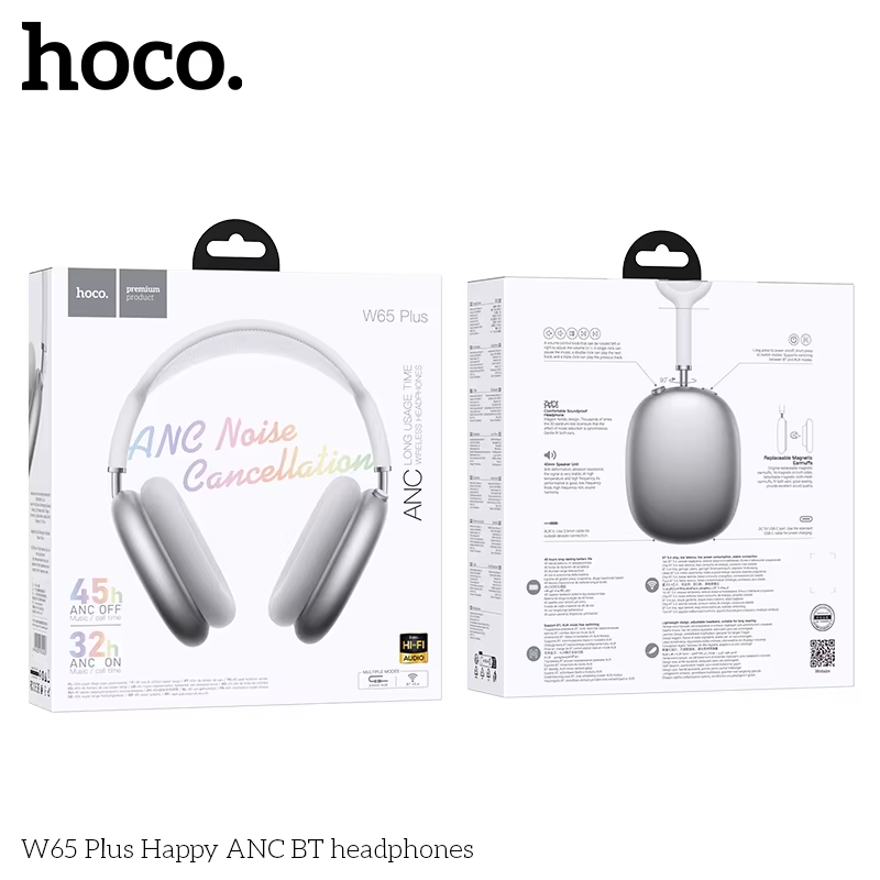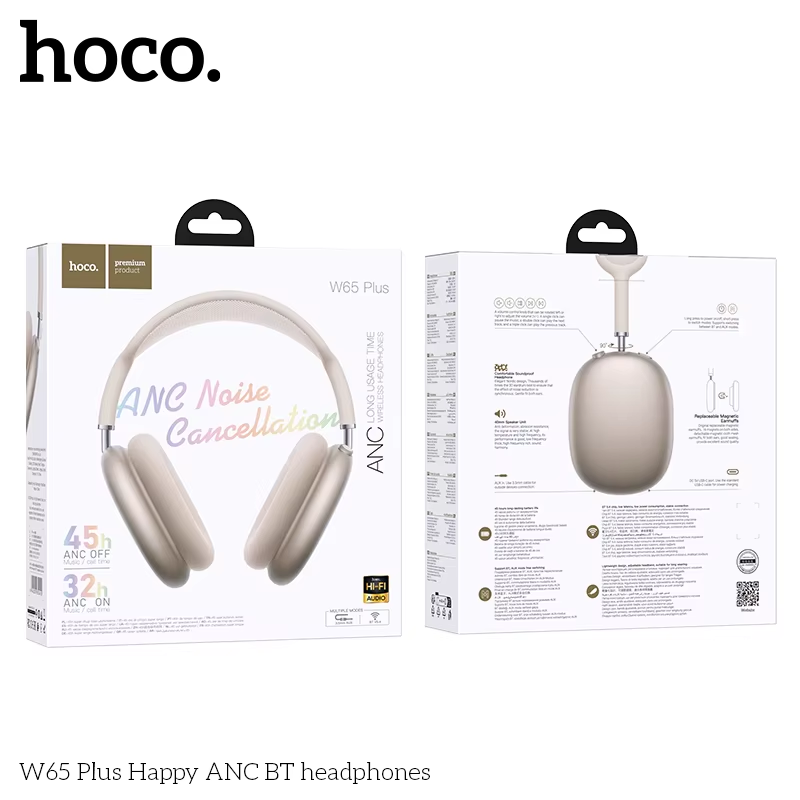 W65 plus ANC Noise Reduction Bluetooth Headphones over the Ear Wireless Big Earp