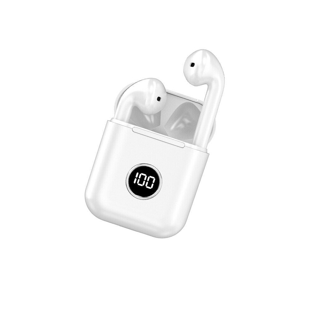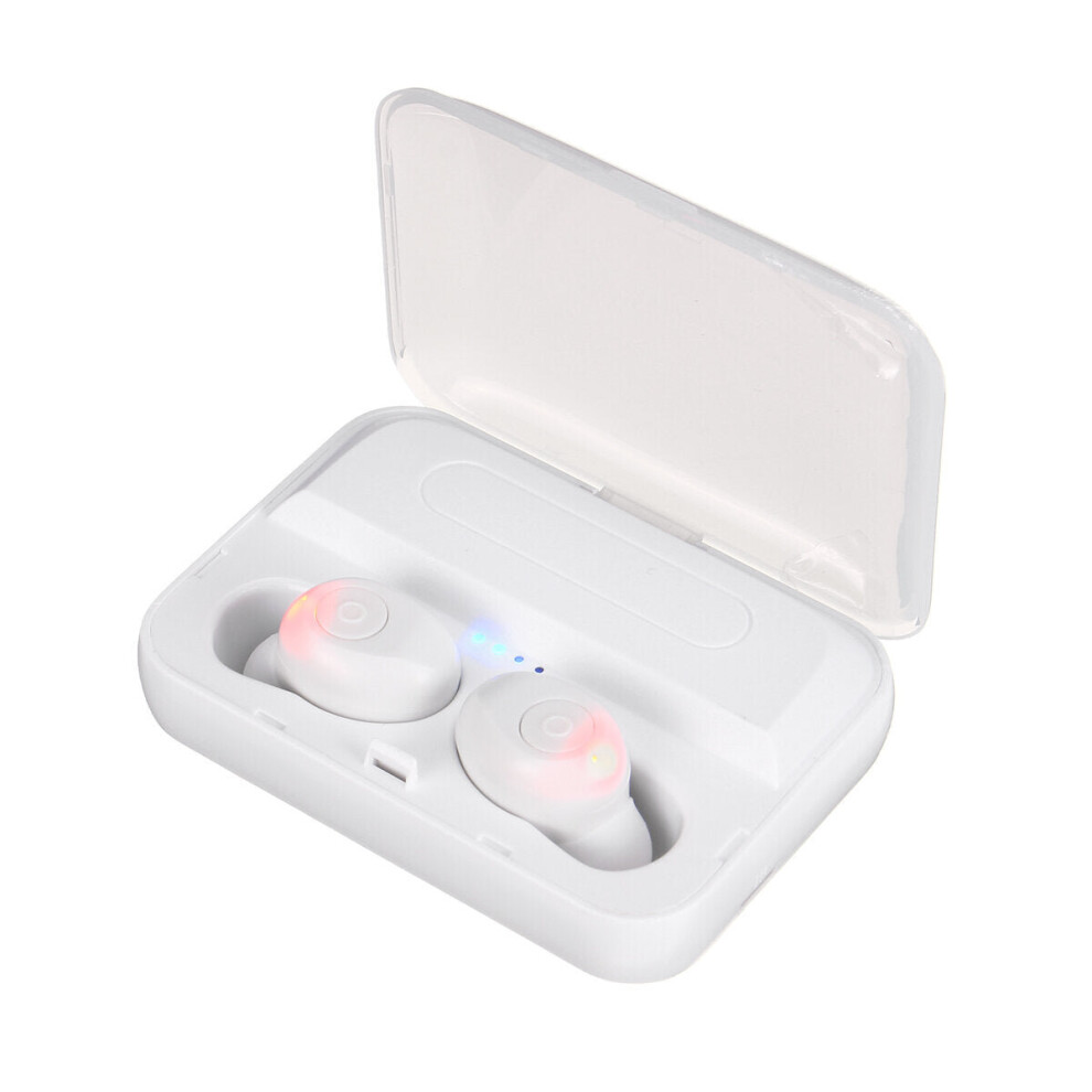 (White) Mini Dual bluetooth 5.0 TWS Wireless Stereo Earphone Noise Reduction Light Display Headphones for