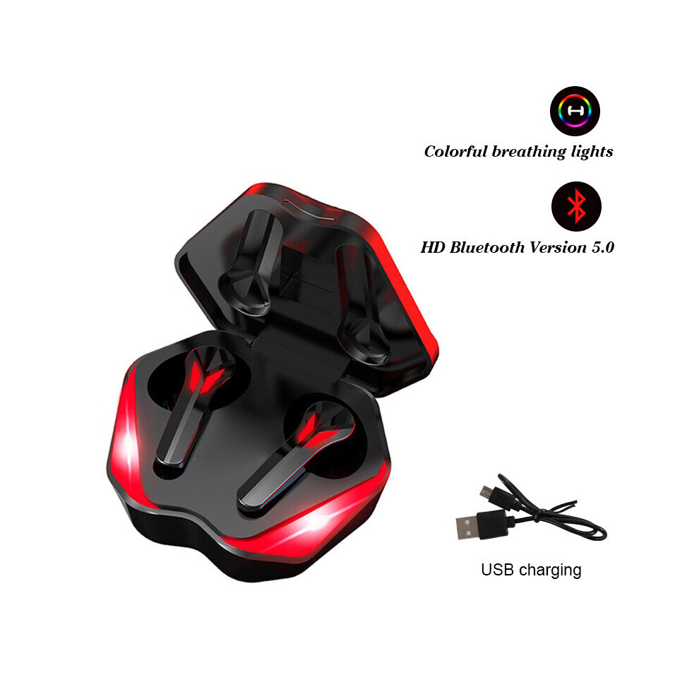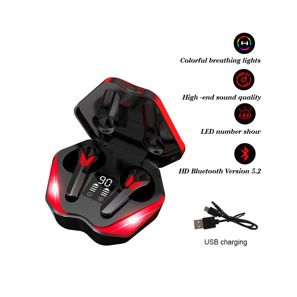 (a-JX60 red) Game Earphones J13 TWS Wireless Bluetooth Digital Display Low-latency In-ear Noise-reduction Headphones E-Sports Earbud with Mic