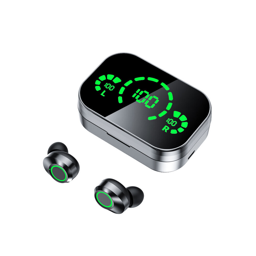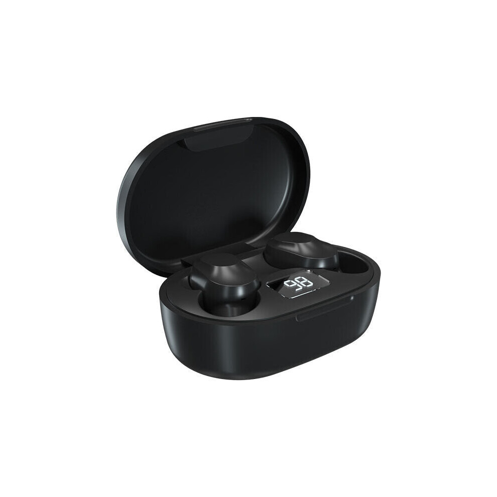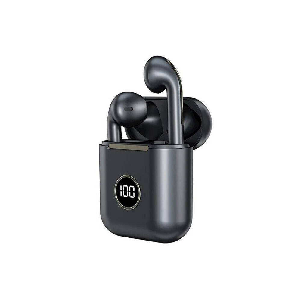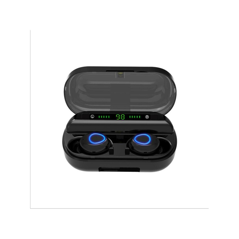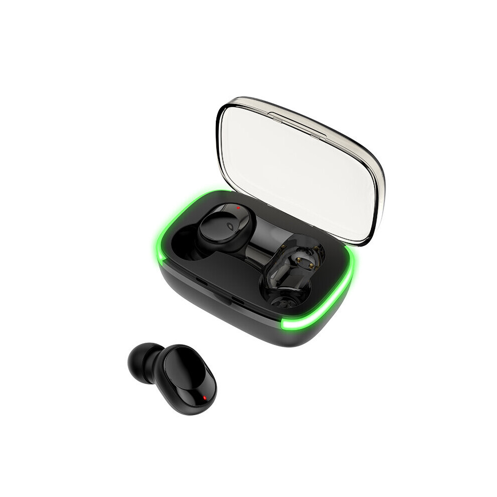 (Black) Mini Dual bluetooth 5.0 TWS Wireless Stereo Earphone Noise Reduction Light Display Headphones for