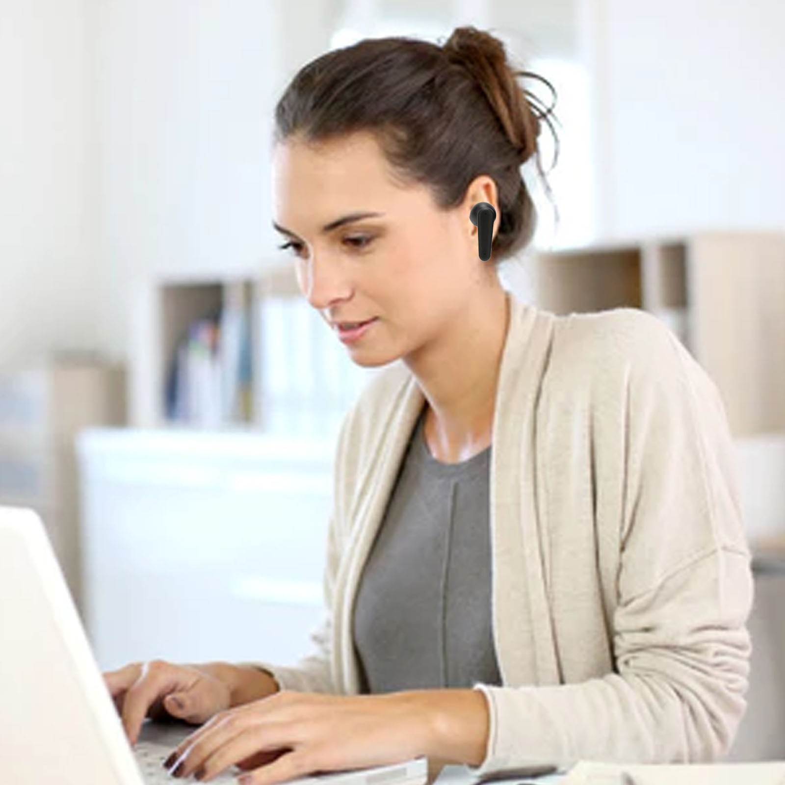 (White) Single Ear Headphones Wireless Noise Reduction Sports Headphones