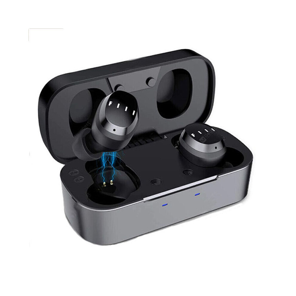 (Black) TWS Earphone bluetooth V5.0 Wireless Headphones Stereo CVC6.0 Noise Reduction Earbuds Sport Headphones with Mic with Charging Case