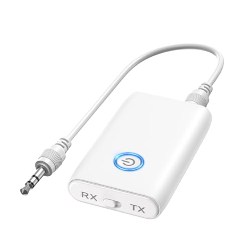 ORIA Bluetooth 5.3 Transmitter Receiver, 2 in 1 Wireless Aux Adapter with Low Latency&Noise Reduction, Long Range, Dual Channel Transmit, 3.5mm Audio Receiver for Home Stereo, Headphones, TV, PC
