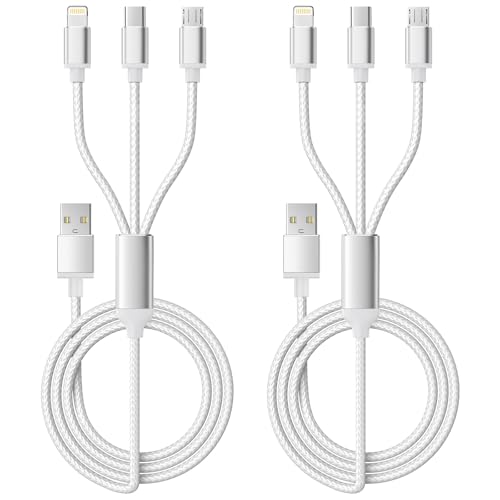 Multi Charger Cable, USB Charger Cable [2Pack 1.2M] 3A Multiple USB Cable 3 in 1 Nylon Braided with Micro USB, Type C Lightning Connector for iPhone, Android Samsung S22 S20, Huawei, Nexus, Nokia,LG