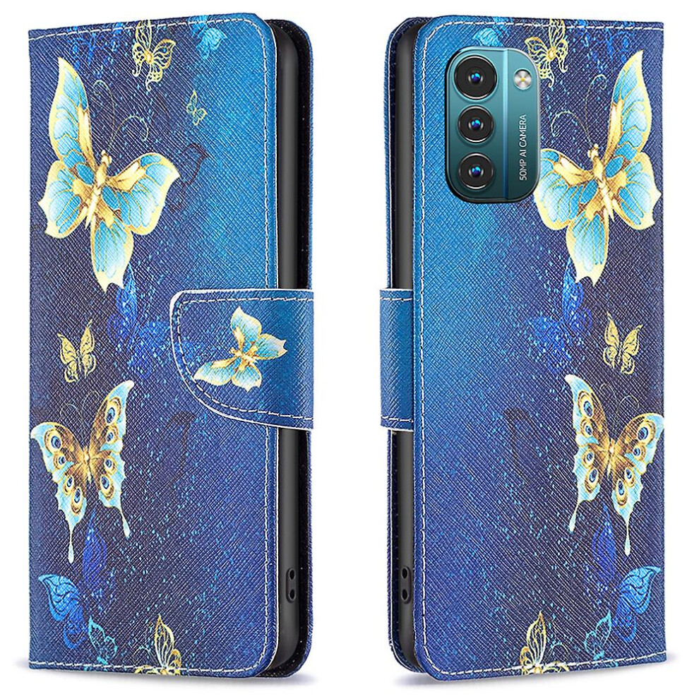 (Golden Butterflies) Pattern Printing Leather Case For Nokia G11/g21, Foldable Stand Design Colorful Pattern Printing Leather Wallet Phone Case