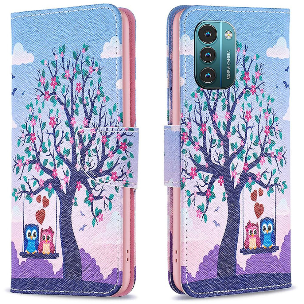 (Two Owls) Pattern Printing Leather Case For Nokia G11/g21, Foldable Stand Design Colorful Pattern Printing Leather Wallet Phone Case