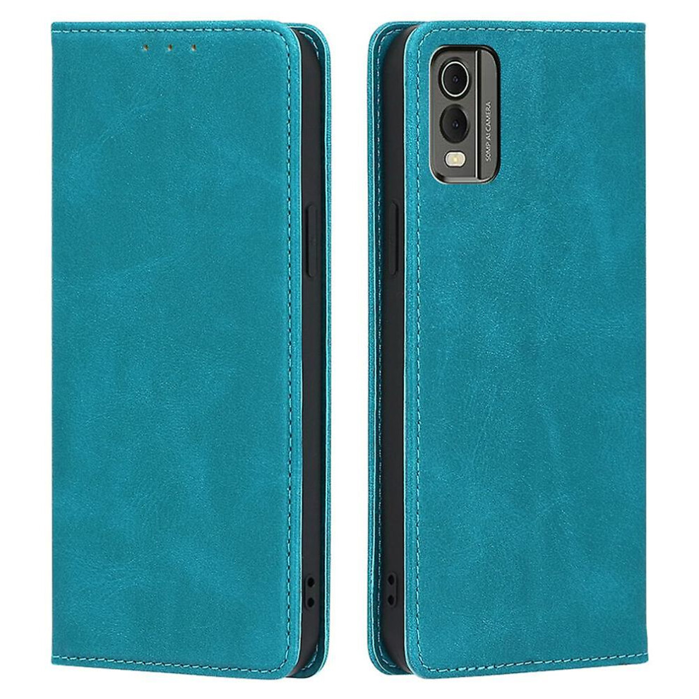 (Baby Blue) For Nokia C32 Calf Texture Case Magnetic Closing Foldable Stand PU Leather Wallet Phone Shell-Brown