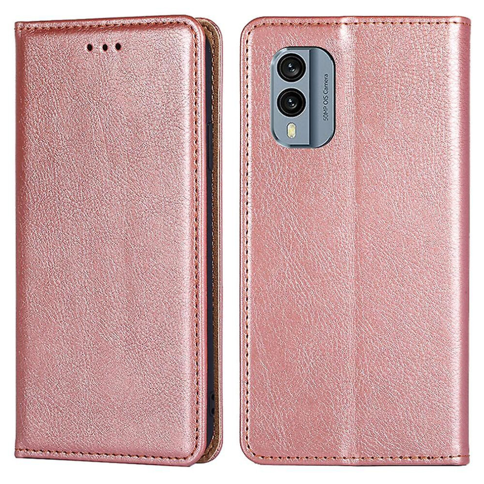 (Rose Gold) For Nokia X30 5G Anti-scratch Phone Case Foldable Stand Wallet Magnetic Auto Closing Cover