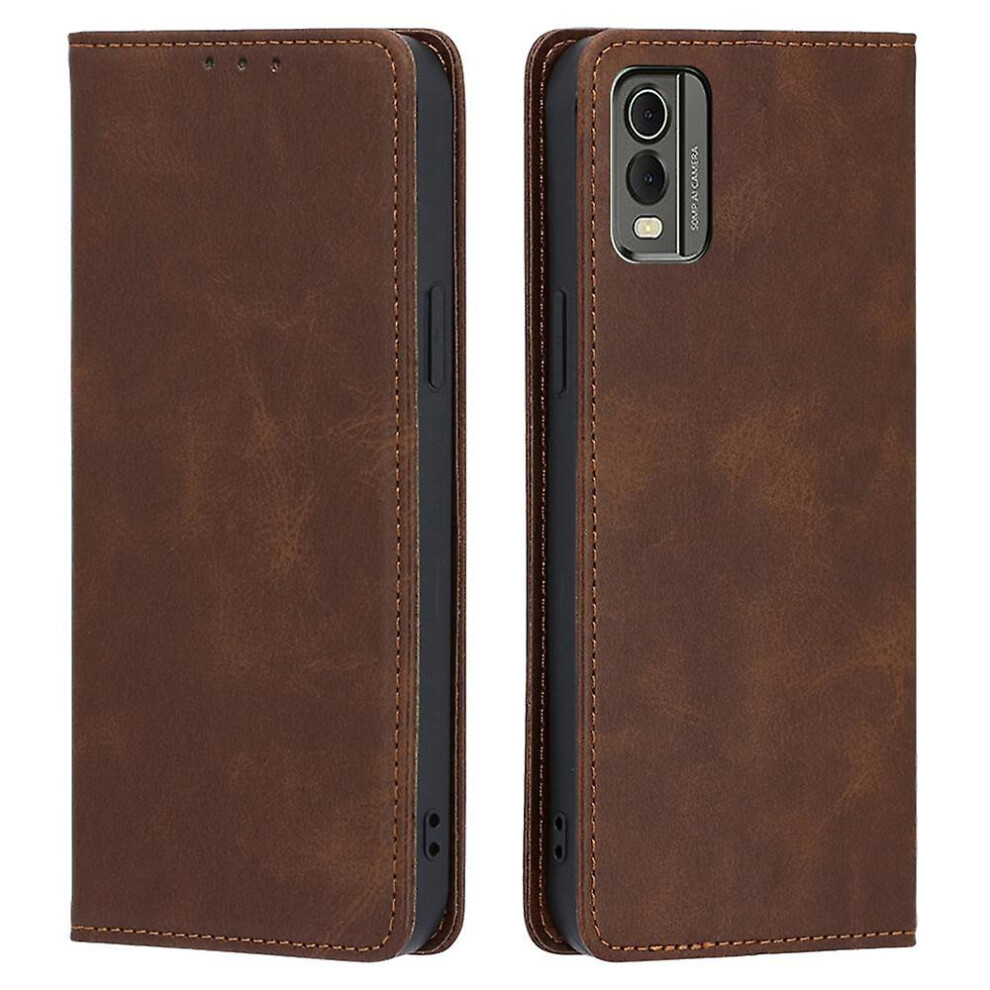 (Brown) For Nokia C32 Calf Texture Case Magnetic Closing Foldable Stand PU Leather Wallet Phone Shell-Brown