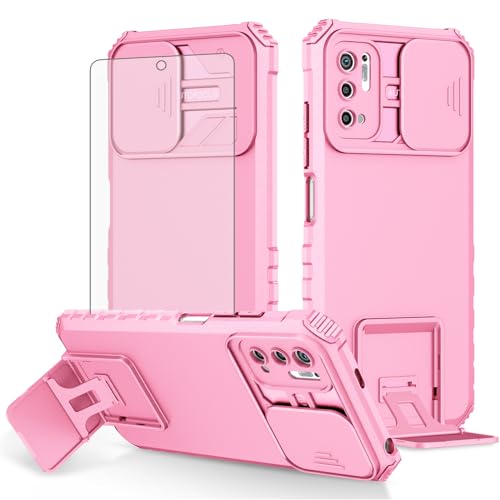 Asuwish Phone Case for Xiaomi Redmi Note 10 5G with Tempered Glass Screen Protector and Slide Camera Cover Kickstand Stand Protective Cell Accessories Poco M3 Pro/Redme Note 10T G5 Women Men Pink
