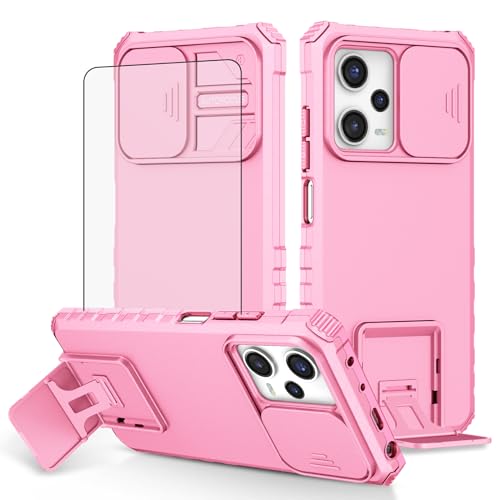 Asuwish Phone Case for Xiaomi Poco X5 Pro/Redmi Note 12 Pro 5G with Tempered Glass Screen Protector and Slide Camera Cover Kickstand Stand Protective Cell Accessories X5Pro 12Pro Speed Women Men Pink