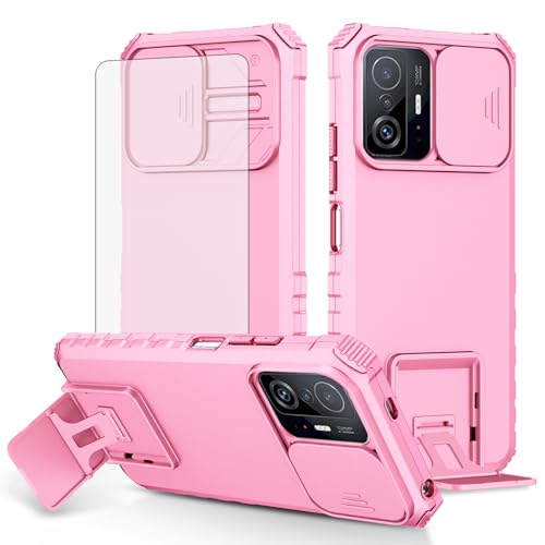 Asuwish Phone Case for Xiaomi Mi 11T/Mi11T Pro 5G with Tempered Glass Screen Protector and Slide Camera Cover Kickstand Stand Slim Protective Mobile Cell Accessories Mi11TPro T11 G5 Women Men Pink