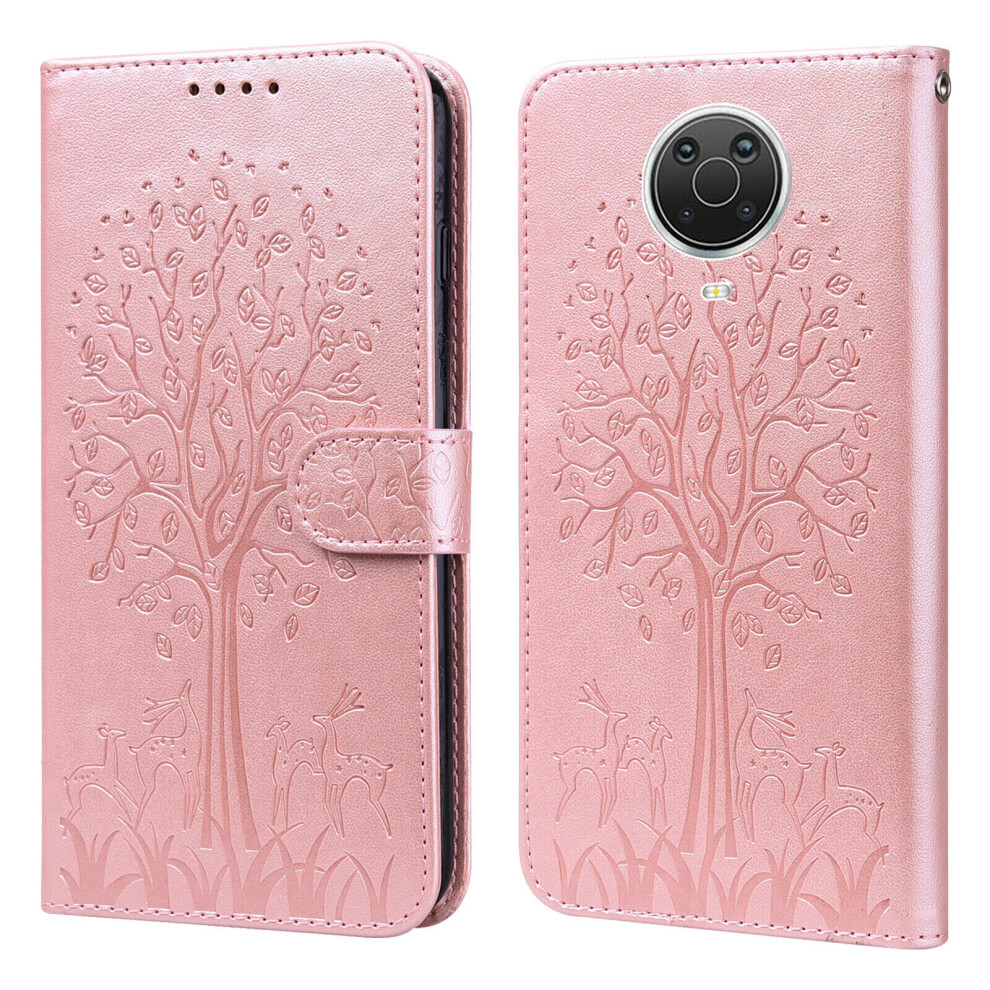 Nokia G20/G10/6.3 Case Leather Cover Embossing Etui Coque - Pink Tree and deer