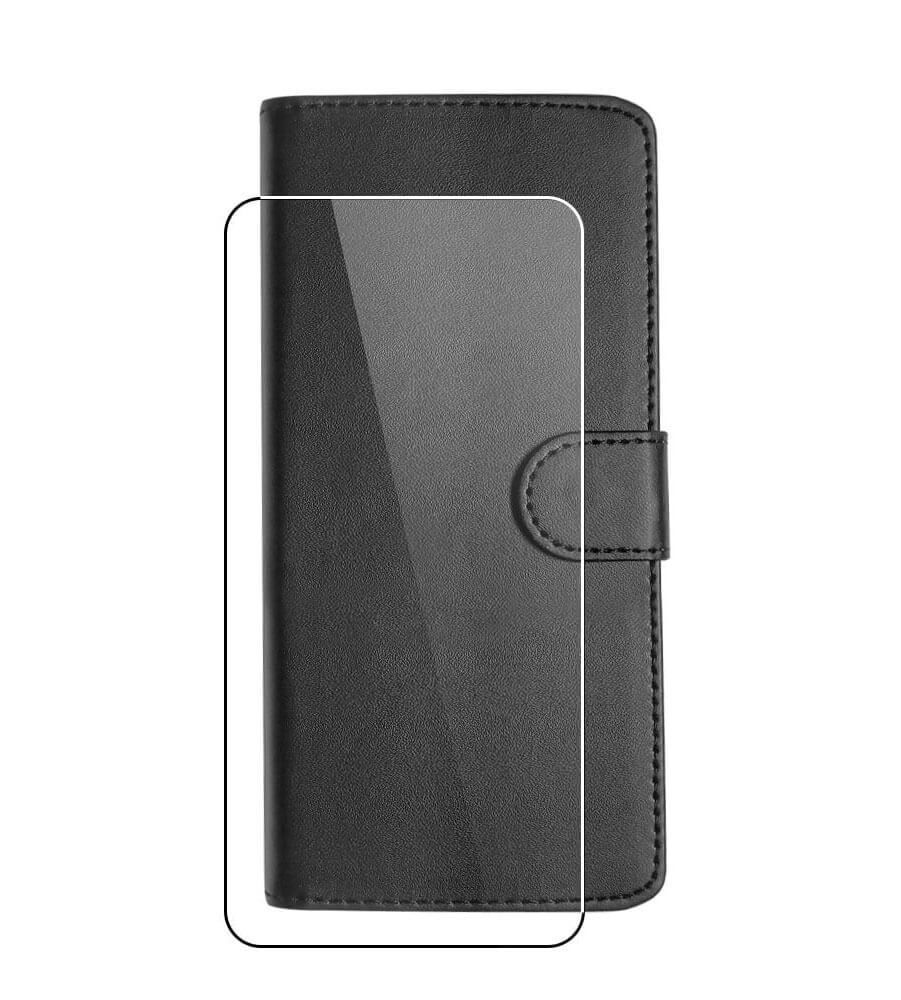 Leather Wallet Flip Case for Nokia XR21 and Glass Screen Protector Black
