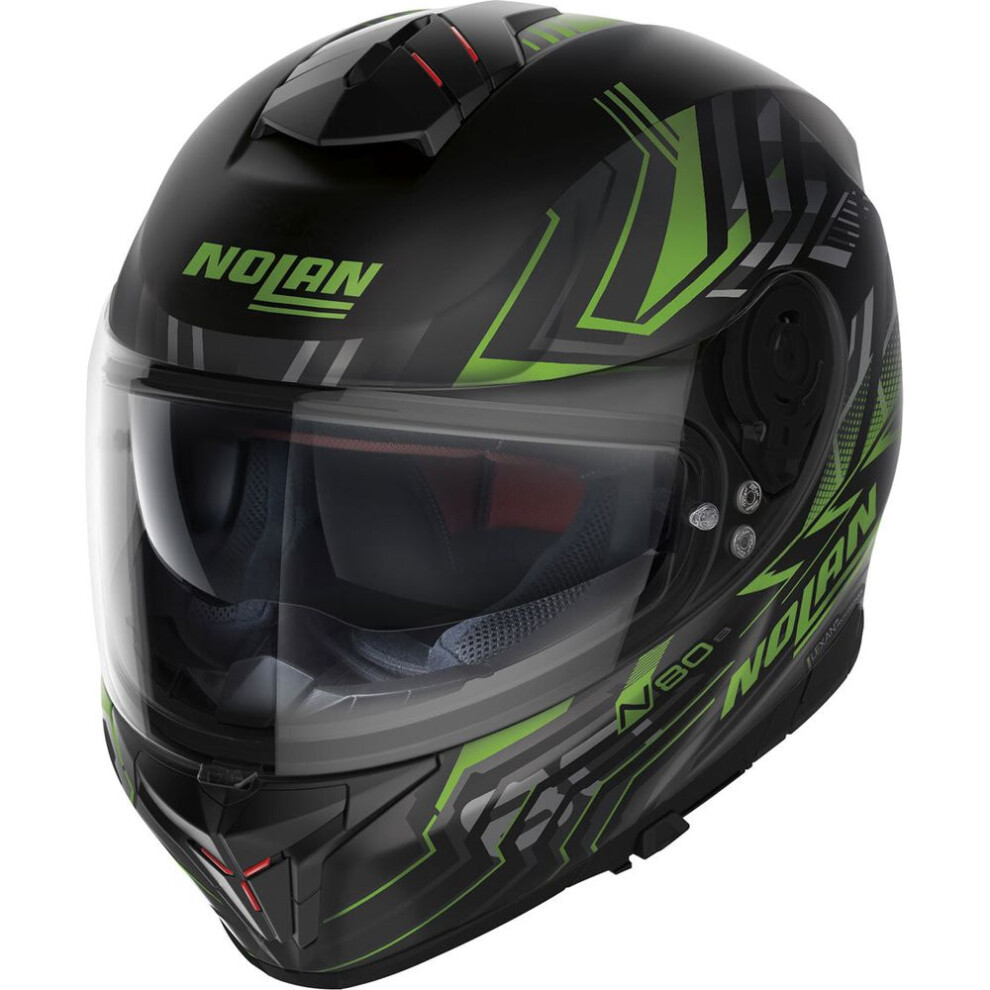 (M) Nolan N80-8 Turbolence N-Com Full Face Helmet Flat Black / Green