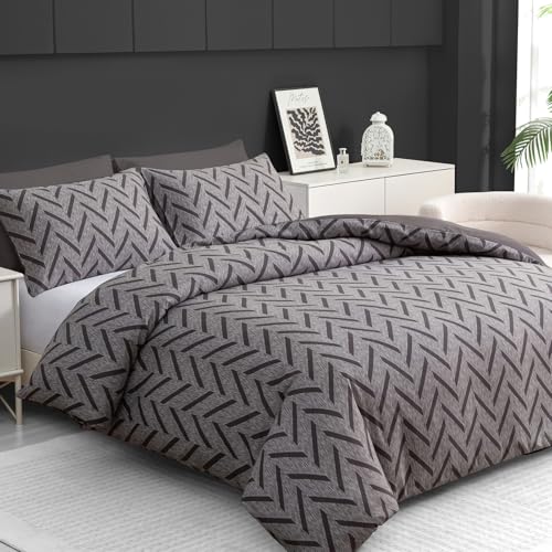 AR Ware Grey King Size Duvet Cover Set - Soft Luxury Bratta Stitch Embroidered Microfiber Duvet Sets with 2 Pillowcases - Non Iron Bedding Hotel Quality Quilt Cover