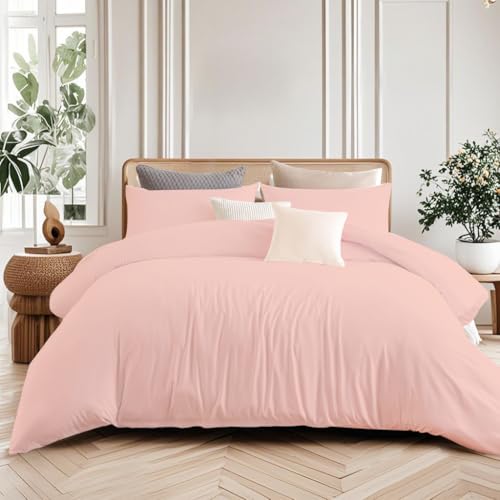 Soifox Double Duvet Cover Set Pink - Soft Microfiber Duvet Cover 200 x 200 cm with 2 Pillowcases 50 x 75 cm, Non Iron Luxury Bedding Set with Zipper Closure