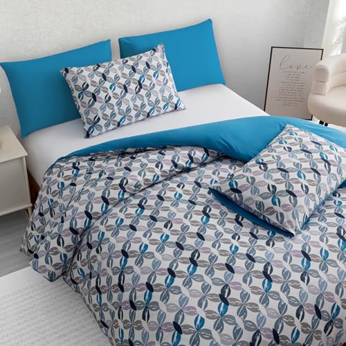 Rapport home Single Duvet Cover Set Premium Polycotton Arches Geometric Design Blue and White Minimalist 2PC Non-Iron Luxury Bedding Set with Snap Closure