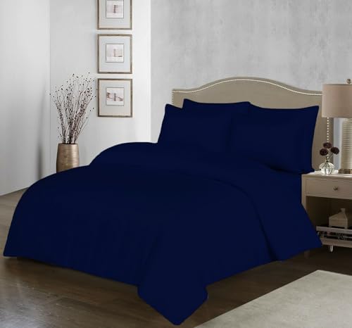 100% Egyptian Cotton Duvet Cover Set |200 Thread Count Plain Dyed Duvet Quilt Cover Set With Free Pillowcases| Non-Iron Easycare Bedding Set - Single Double King Super King Sizes (Navy, Double)
