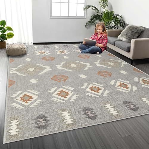 MOONLIGHT20015 Rugs Living Room 80x150 cm – Geometric Style Tribal Pattern Grey Area Rugs for Bedroom Large – Non Slip Bedside Printed Carpet Rug for Lounge, Nova