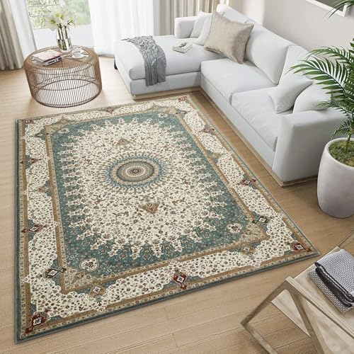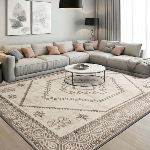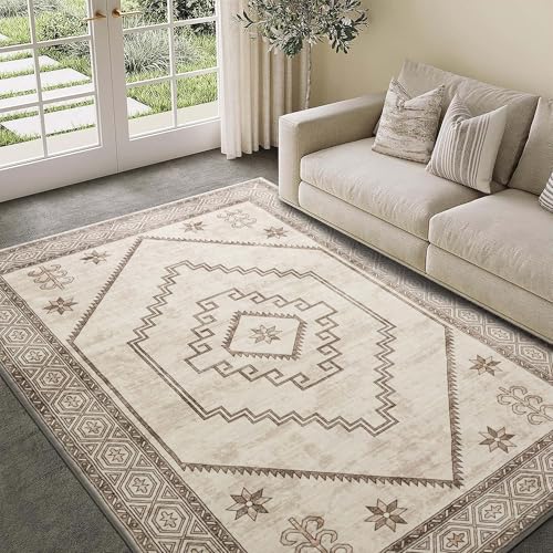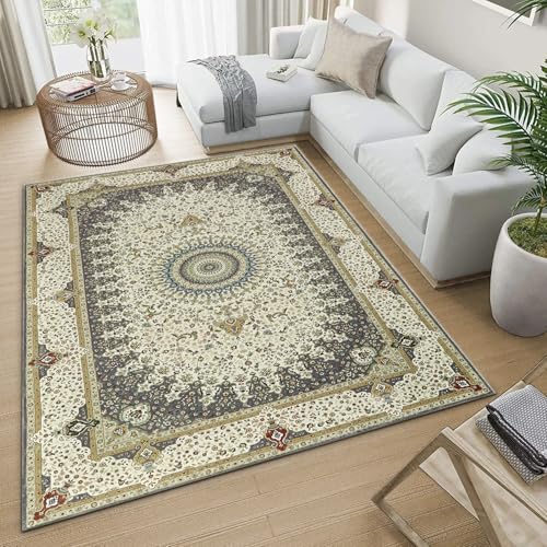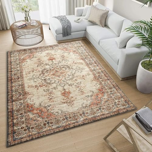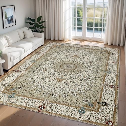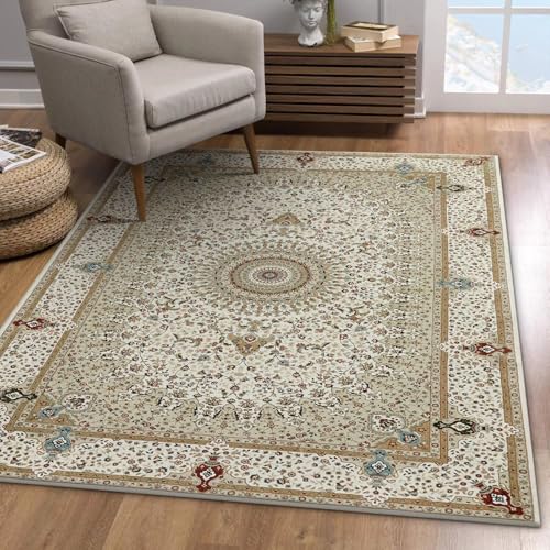Imperial Rooms Machine Washable Rugs Living Room 120 x 170 cm – Soft Short Pile Large Beige Area Rugs For Bedroom Non Slip Carpet Bedside Rug Traditional Design Vintage Boho Cashmere Rug, Radiant