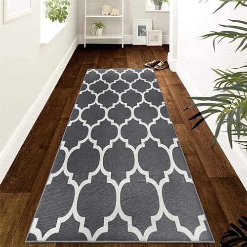 MOONLIGHT20015 Rugs for Hallway 60x220 cm – Trellis Style Grey Area Rugs for Bedroom Living Room – Non Slip Modern Printed Carpet Rug for Lounge, Ava Grey